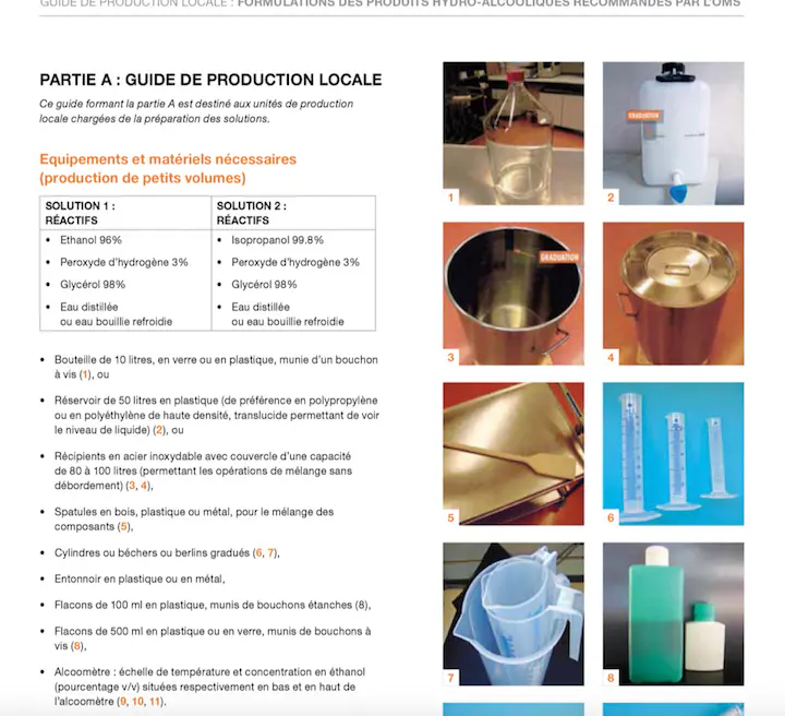 L'OMS avait publié un guide pour réaliser son propre gel hydroalcoolique à l’époque où il était diffiicle de s'en procurer.