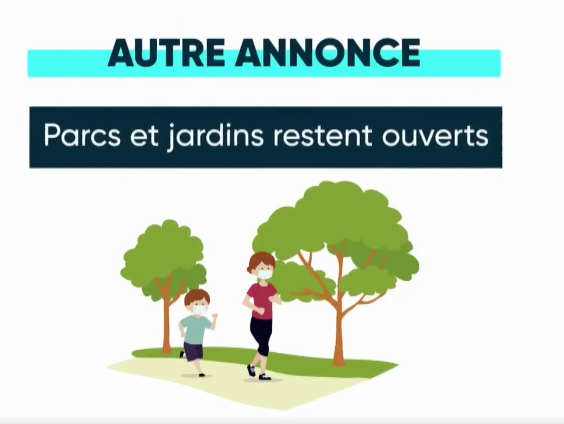 Autre annonce : les parcs et les jardins resteront ouverts, ce qui permettra aux enfants de jouer et de s’aérer. Au printemps dernier, le confinement avait été très difficile à vivre pour certains enfants handicapés, malades, les enfants autistes par exemple.