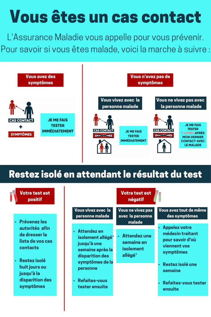 Un cas contact, c'est une personne qui peut avoir contracté le Covid-19 après avoir fréquenté une personne contaminée. Vous devenez un cas contact quand une personne de votre foyer ou quand une personne avec qui vous avez passé du temps est testée positive au Covid.