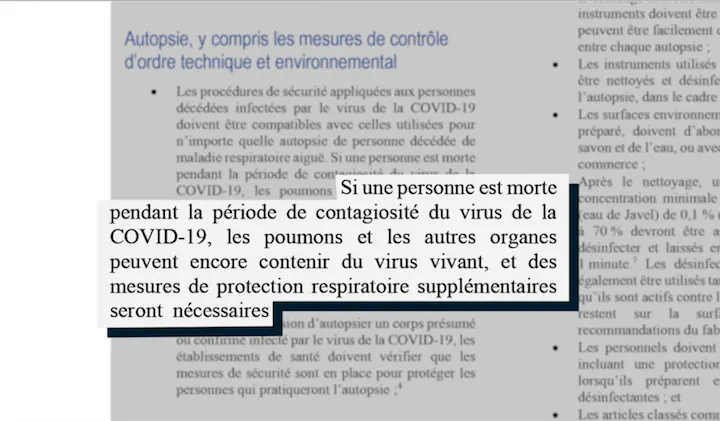 Si des précautions sont prises pendant l'autopsie, c'est pour éviter que la personne qui les pratique soit contaminée, l’OMS n’a donc jamais interdit les autopsies, elle précise simplement les règles sanitaires pour éviter les contaminations par le virus.