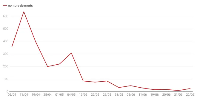 Ce 23 juin, la France a enregistré 23 décès supplémentaires dus au coronavirus ces dernières 24 heures. C’est 27 fois moins que les 635 décès enregistrés le 11 avril, un des relevés quotidiens les plus élevés depuis que la pandémie a gagné le pays.