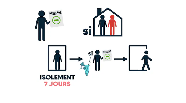 Pour tous ces cas, vous devez rester à l’isolement complet en attendant le résultat du test. Là aussi il va y avoir plusieurs cas de figure.