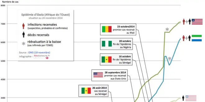 Près d'un an après le début de l'épidémie de fièvre hémorragique, le nombre de morts s'élève à 5.459, sur un total de 15.351 personnes infectées par le virus, selon le dernier bilan de l'OMS, publié le 21 novembre. Le précédent bilan de l'Organisation, du 19 novembre, faisait état de 5.420 morts sur 15.145 cas. Néanmoins, l'OMS estime elle-même que les chiffres de ces bilans sont sous-estimés. En deux mois, le nombre de décès a doublé, passant de 2.803 le 22 septembre à 5.459. D'autre part, le bilan chez le personnel soignant s'est encore aggravé, avec 337 morts, contre 181 deux mois plus tôt.