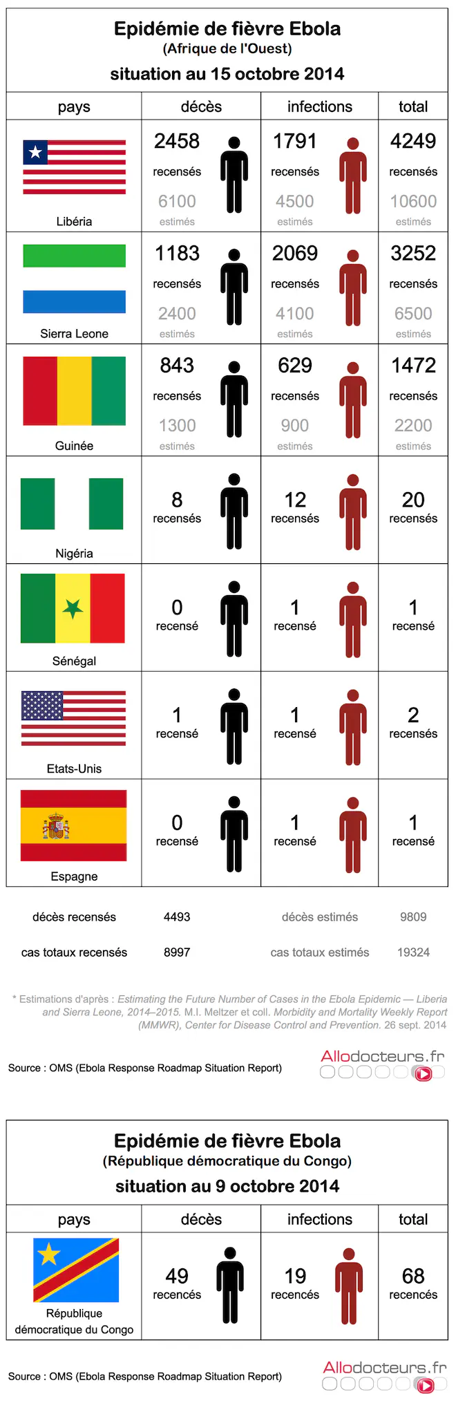 Une épidémie de moindre ampleur sévit en République démocratique du Congo depuis cet été, qui a tué 49 personnes sur 69 malades apparemment touchés par le virus entre fin juillet et le 7 octobre 2014.