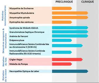 8 candidats-médicaments de thérapie génique issus des recherches du Généthon sont à l’essai. Source : AFM-Téléthon.