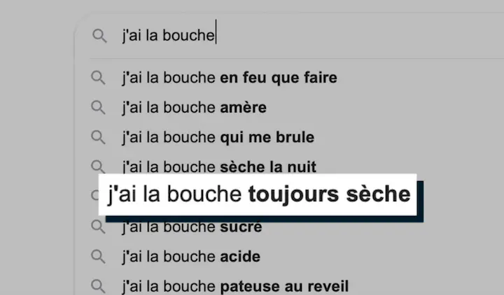 Si vous tapez "J’ai la bouche" sur un moteur de recherche, vous tombez tout de suite sur "pâteuse", "sèche", "en feu", "amère" "toujours sèche", "qui me brûle". On obtient 97 700 résultats pour cette bouche pâteuse. Cela touche les hommes comme les femmes, ces personnes témoignent souvent de la sensation désagréable que cela induit mais aussi de leur gêne sociale… A tel point que certaines ont tendance à se replier un peu sur elles-mêmes, à moins parler, à moins s’exprimer en public. C’est dommage car il existe des solutions.