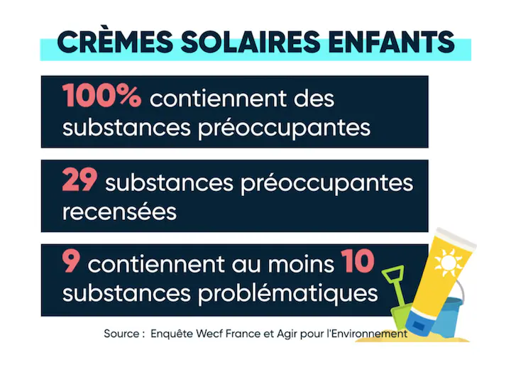 C’est pourquoi les associations qui ont mené cette enquête demandent que l’ANSES, l’agence nationale de sécurité sanitaire, évalue le rapport bénéfices/risques des produits solaires pour enfants.