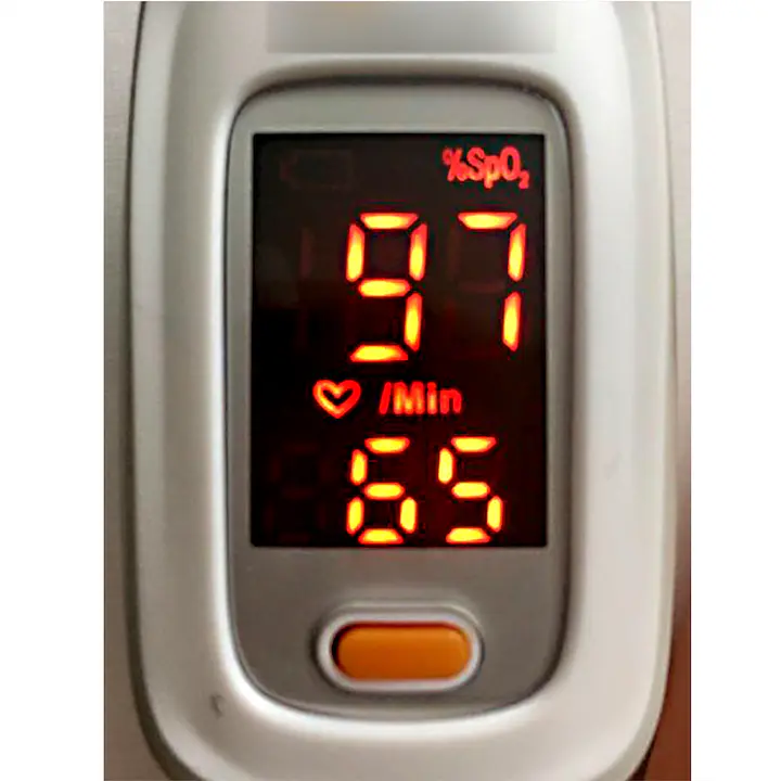 Il y a deux chiffres qui s’affichent : celui de la saturation au repos et celui indiquant le pouls. Celui qui vous intéressera est le chiffre de la saturation en oxygène qui s'affiche sous forme de pourcentage.