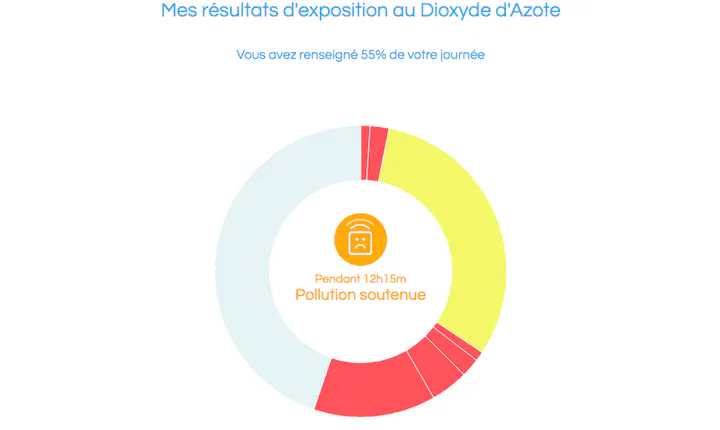 Le graphique récapitulatif de l'exposition au dioxyde d'azote d'une journaliste de la rédaction.
