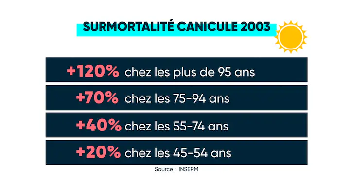 Au cours de la première quinzaine d'août 2003, la France métropolitaine a connu une vague de chaleur d'une intensité, d'une durée, et d'une étendue géographique exceptionnelles. Celle-ci a été à l'origine d’une très forte surmortalité. À l'époque, environ 15 000 décès supplémentaires ont été enregistrés par rapport à la mortalité habituelle de cette période de l'année. En 2003, personne n’était préparé à ce phénomène.