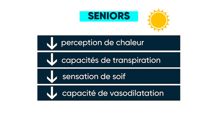 Parce que les mécanismes physiologiques d’adaptation diminuent avec l’âge, il y a une réduction :