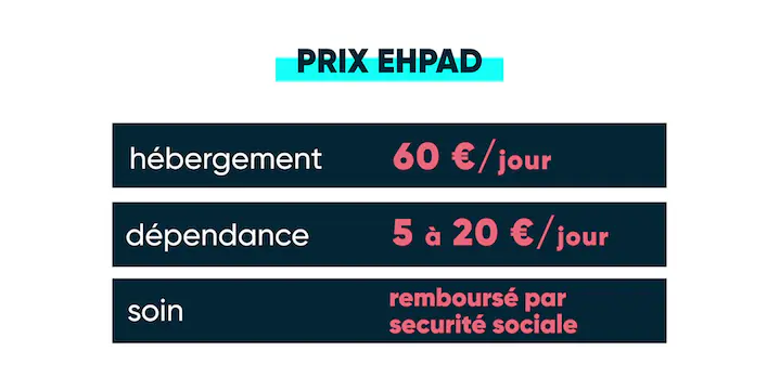 Un EHPAD c’est un hôtel, doublé d’un restaurant, et d’un lieu de soins. C’est un hôtel-restaurant dans lequel on s'occupe de votre toilette et dans lequel on fait vos pansements. De fait, le prix d’un EHPAD se divise en trois : l’hébergement, la dépendance, et le soin .