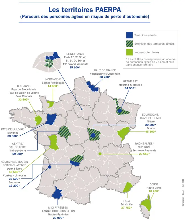 Implantations des PAERPA tels qu'annonçé par le ministère de la Santé le 16 juin 2016.