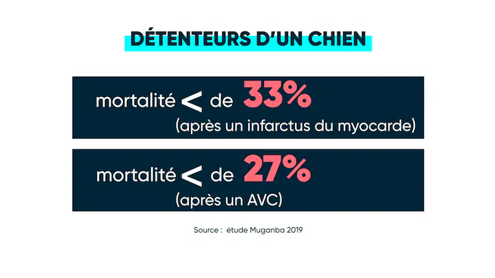 En tenant compte de l’âge, du niveau socioéducatif, de l’état de santé antérieur, du statut marital, de la présence d’enfant, du lieu de résidence, du niveau économique, les auteurs constatent que la mortalité au décours d’un infarctus du myocarde est, chez les personnes qui ont un chien, inférieure de 33%, à celle des personnes qui n’en n’ont pas.