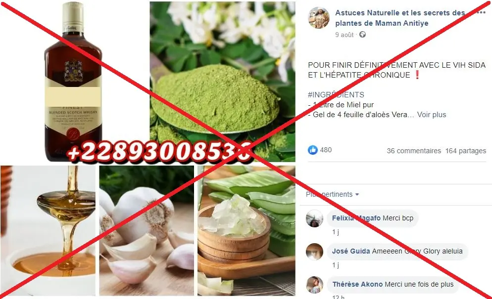 "Le contenu présenté par cette publication Facebook n’a aucun fondement scientifique aussi bien pour le traitement du VIH que l’hépatite", explique le Dr Camille Anoma, directeur exécutif de l’ONG ivoirienne Espace Confiance, qui lutte contre le VIH. "Pour chacune de ces maladies il existe des traitements indiqués. Les médicaments approuvés pour le VIH sont les antirétroviraux (ARV). En ce qui concerne l’hépatite, le traitement est fonction du type d’hépatite et les recommandations des pays guident l’attitude à avoir", précise le médecin spécialisé dans la prise en charge des maladies virales et des infections sexuellement transmissibles (IST) au sein des populations à risque.