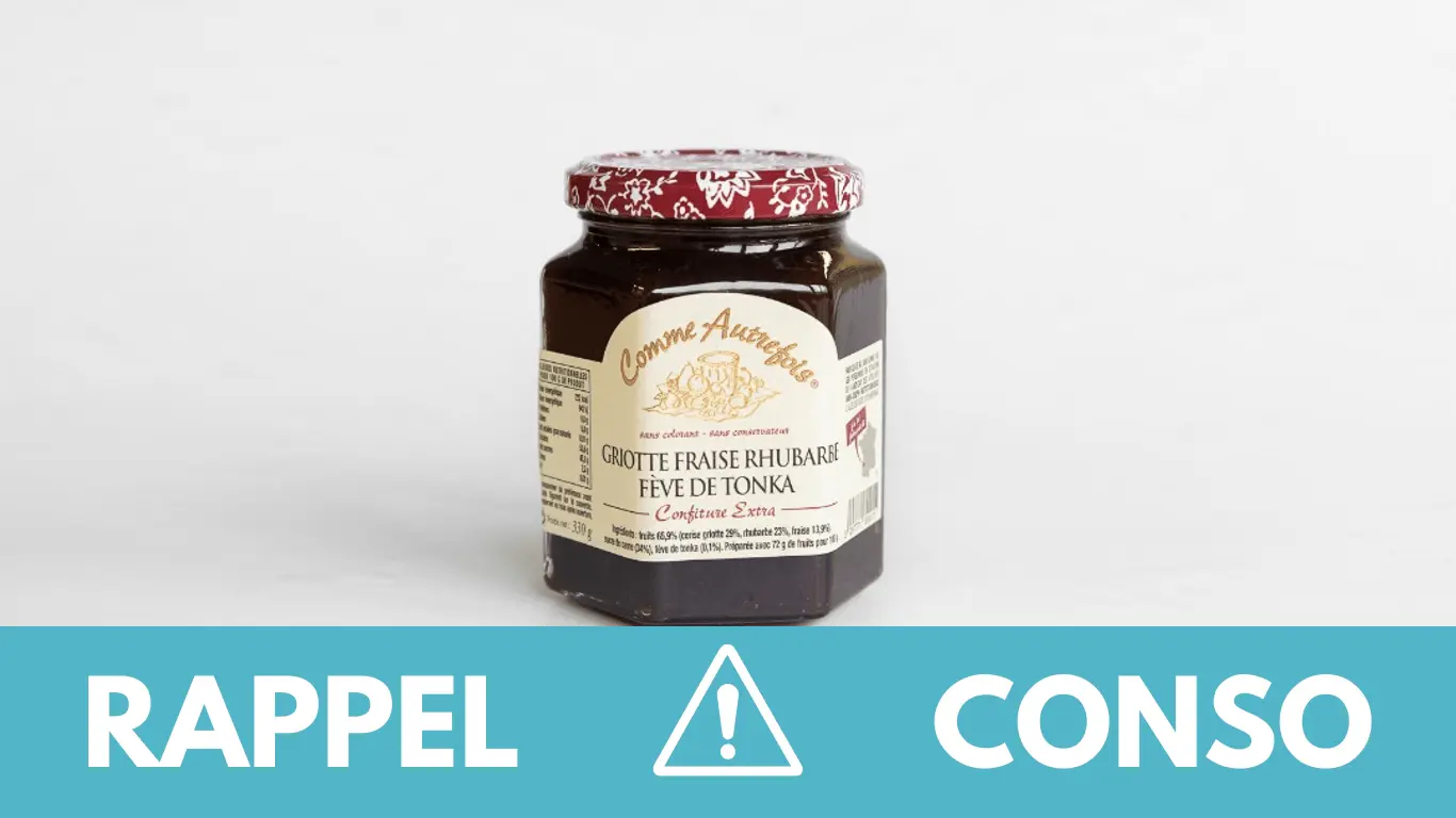 Le rappel consommateur concerne la confiture "Griotte Fraise Rhubarbe et Fève de Tonka" - 330 G de la marque Comme Autrefois. Elle a été commercialisée dans les grandes et moyennes surface (SUPER U - U EXPRESS - INTERMARCHE - MONOPRIX) et en vente directe en Boutique et sur internet à travers la France entière du 14/01/2025 au 09/04/2025.