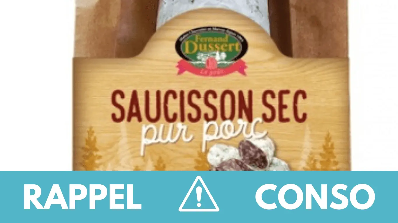 - le SAUCISSON SEC PUR PORC de la marque FERNAND DUSSERT. Il est commercialisé dans les enseignes Cercle Territorial gendarmerie Dijon, Carrefour, Terrines du Morvan , Schiever Coopérative U, Carrefour Contact, Intermarché de France entière du 14/02/2025 au 17/02/2025. Il s’agit du lot 3446484667761 0417422 Date limite de consommation 11/04/2025.