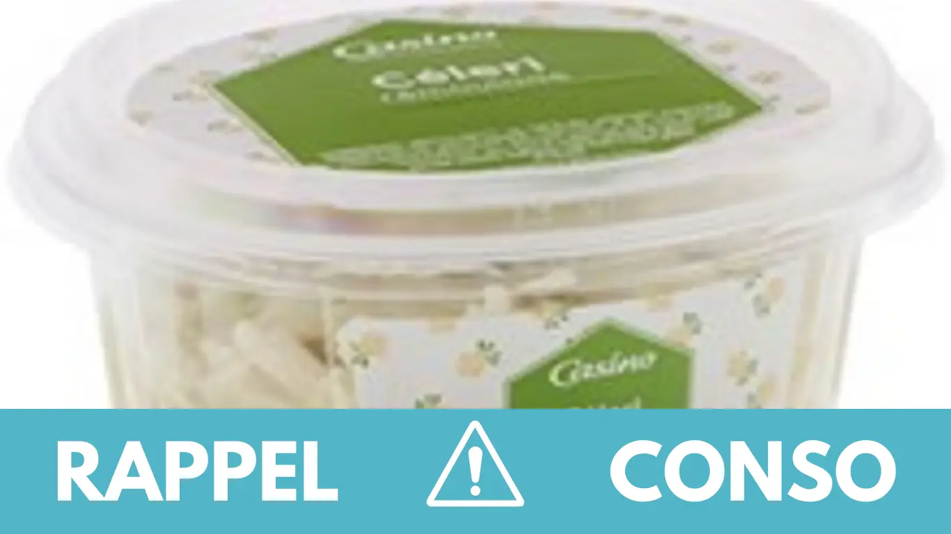 Le rappel consommateur concerne le Céleri rémoulade 300g de la marque Casino. Il est commercialisé dans les enseignes CASINO, VIVAL, SPAR et réseaux de distribution de Casino de France entière du 30/10/2023 au 01/11/2023.