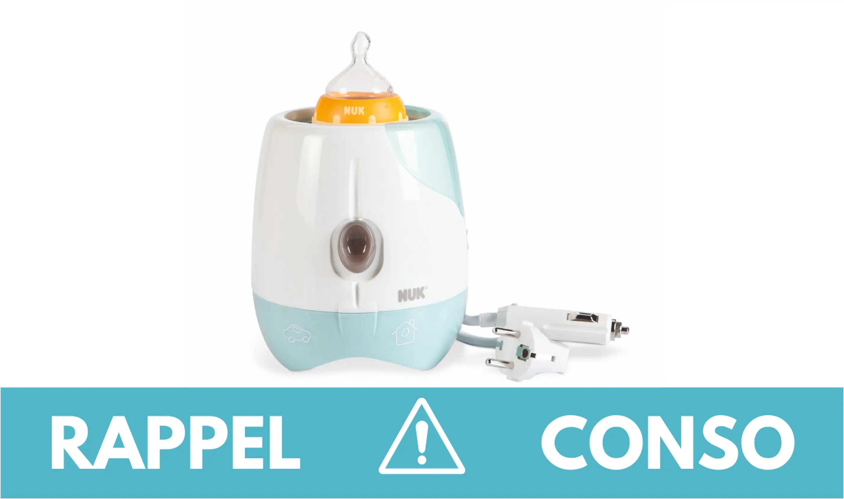 Le rappel consommateur concerne le chauffe-biberon express et le chauffe-biberon express Maison & Voiture de la marque NUK. Ils ont été commercialisés chez les principaux distributeurs français : Aubert, Orchestra, Amazon, les grandes surfaces spécialisées (GSS) et vente en ligne (e-commerce) de France entière du 01/06/2014 au 01/11/2022.