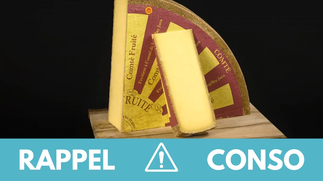 Le rappel consommateur concerne le comté fruité de la marque COMTÉ FRUITÉ. Il est commercialisé à la FRUITIERE A COMTE EURL LA SAINT CHRISTOPHE 1 GRANDE RUE 39130 CLAIRVAUX LES LACS du 27/12/2023 au 03/01/2024.