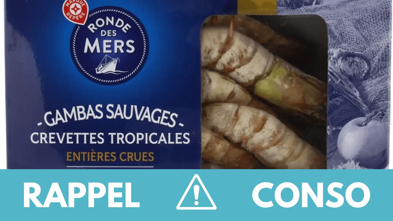 Le rappel consommateur concerne les GAMBAS SAUVAGES SURGELEES - CREVETTES TROPICALES ENTIERES CRUES - 500G de la marque RONDE DES MERS. Ce produit a été commercialisé dans les enseignes E.LECLERC de France entière du 30/08/2023 au 10/01/2024.