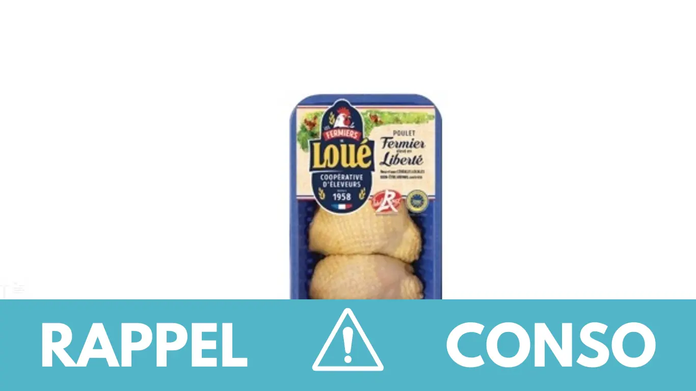 Le rappel consommateur concerne le HAUT DE CUISSE DE POULET SOUS ATMOSPHERE PROTECTRICE de la marque LOUÉ. Il est commercialisé dans les enseignes AUCHAN et LECLERC de France entière du 01/07/2023 au 16/07/2023.