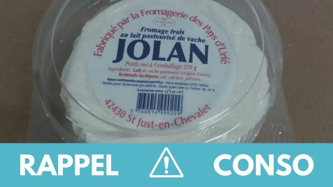 - le JOLAN au lait de vache pasteurisé 220G (avec ou sans coque) de la marque SOCIETE LAITIERE DE VICHY. Il est commercialisé dans les crèmeries, fromageries, autres petits commerces, ou GMS (Grandes et Moyennes Surfaces) de France entière du 01/10/2022 au 04/02/2023.