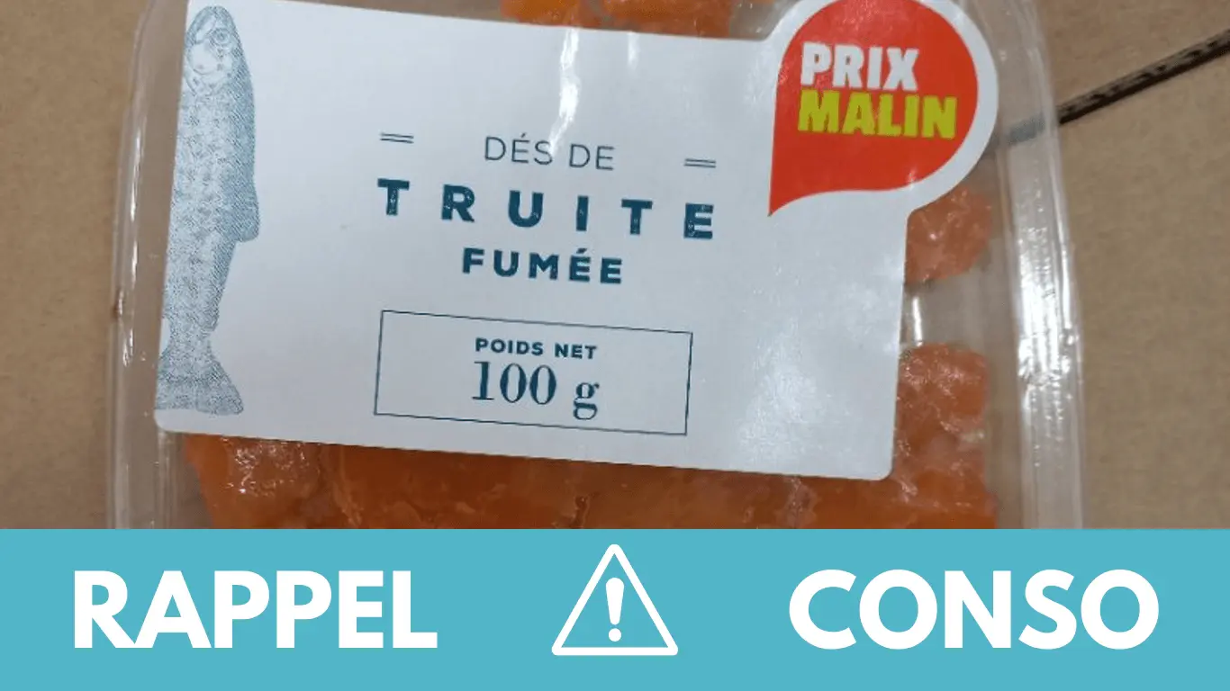 Le rappel consommateur concerne les Dés de truite fumée 100g de la marque Prix malin. Ils ont été commercialisés dans les enseignes Fresh, Grand frais, mon-marché.fr, Biofrais de France entière du 08/07/2024 au 11/07/2024.
