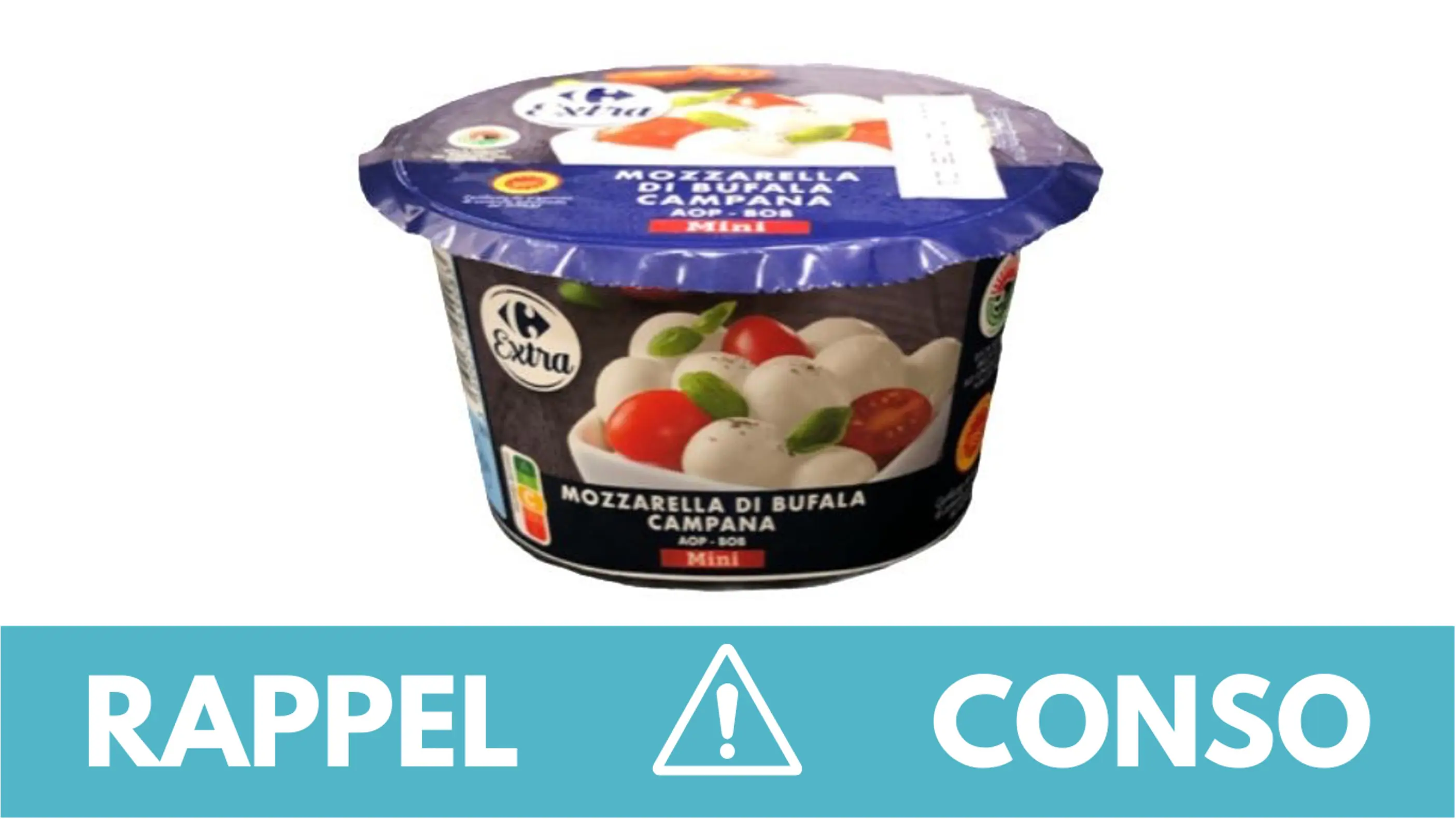 Le rappel consommateur concerne la mozzarella Di Bufala Campana AOP Mini pot de 120g de la marque Carrefour extra. Il a été commercialisé dans les enseignes CARREFOUR de France entière du 28/07/2023 au 11/08/2023.