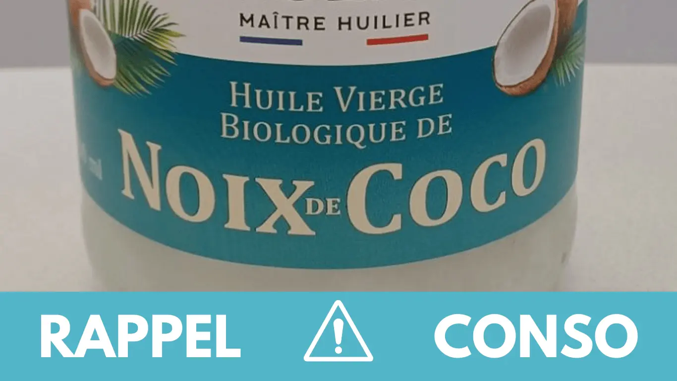 Le rappel consommateur concerne l'huile vierge biologique de noix de coco en pot en verre de 500 mL de la marque Huilerie Vigean. Il est commercialisé dans les magasins bio et pharmacies de France entière du 21/02/2024 au 09/09/2024.