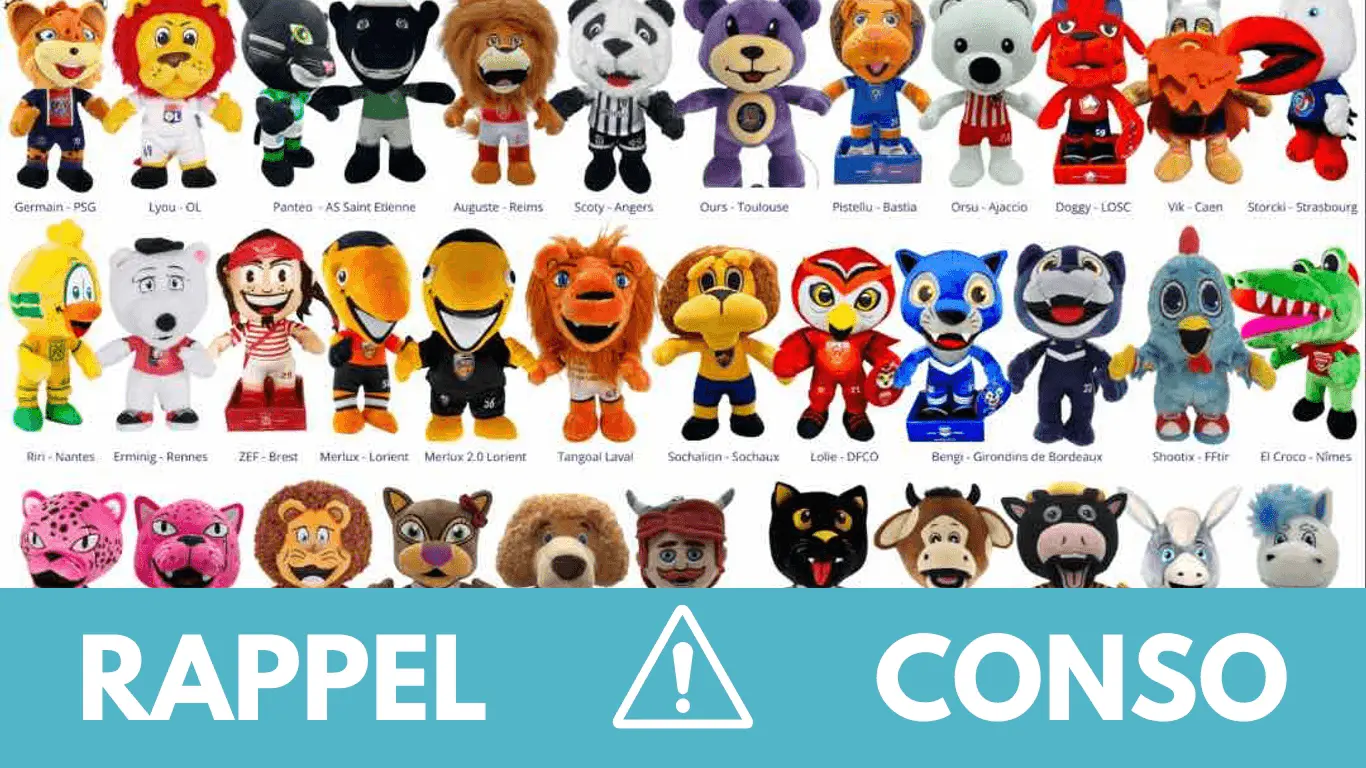 Le rappel consommateur concerne les Peluches debout avec petite partie dure sous les pieds de la marque Poupluche. Elles ont été commercialisées dans les Boutiques Officielles de clubs sportifs de France entière du 01/12/2019 au 15/12/2023.