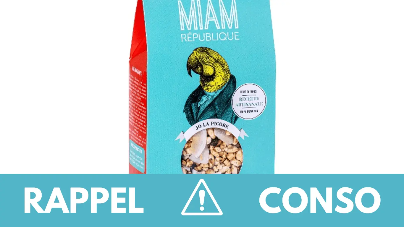 - le Granola Jo La Picore aux Noix du Brésil, Noix de Coco & Chocolat en format 170g et en 330g de la marque Miam République. Il est commercialisé dans les magasins bio, épiceries fines, magasins paysan, hôtels et distributeurs de France entière du 18/04/2024 au 03/07/2024. Il s’agit du lot 3760309220161 24144, 24155, 24176, 24505, 24134 3760309220031 24144, 24155, 24176, 24505, 24134.