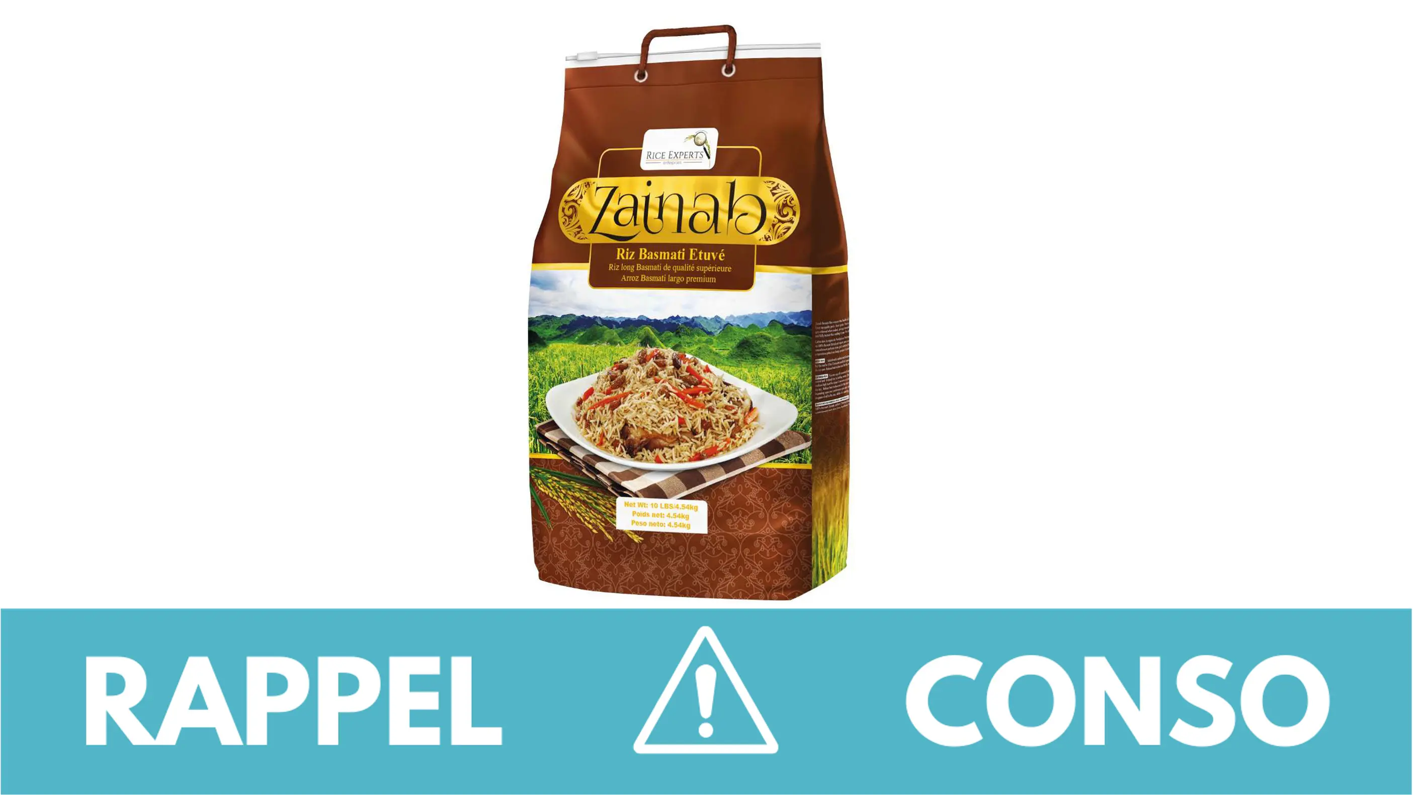 Le rappel consommateur concerne le riz basmati étuvé de la marque ZAINAB vendu en sac de 4,54 kg. Il a été commercialisé dans les enseignes BangRak et Costco de France entière du 30/03/2023 au 26/07/2023.