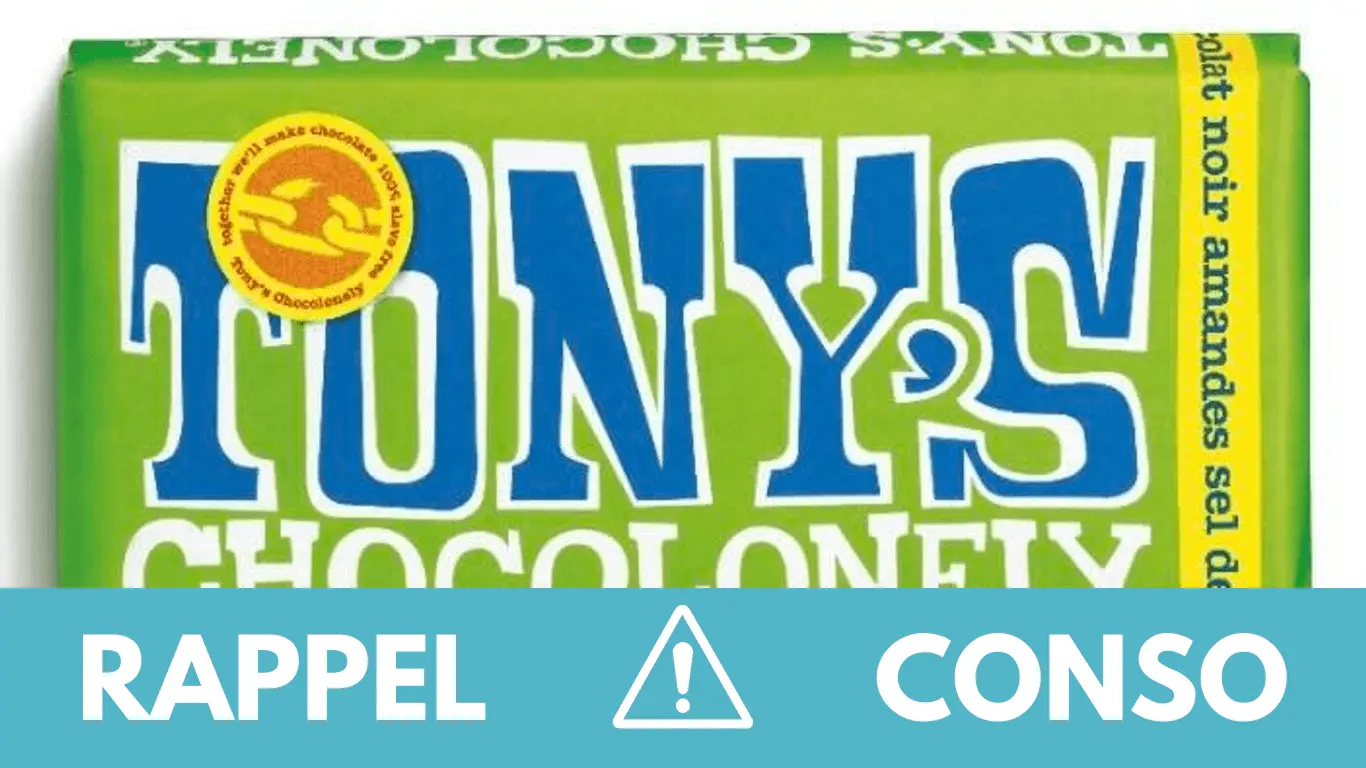Le rappel consommateur concerne les tablettes de chocolat Noir Amandes sel de mer de la marque TONY’S CHOCOLONELY. Elles ont été commercialisées dans les enseignes TASTE DISTRIBUTION de France entière.