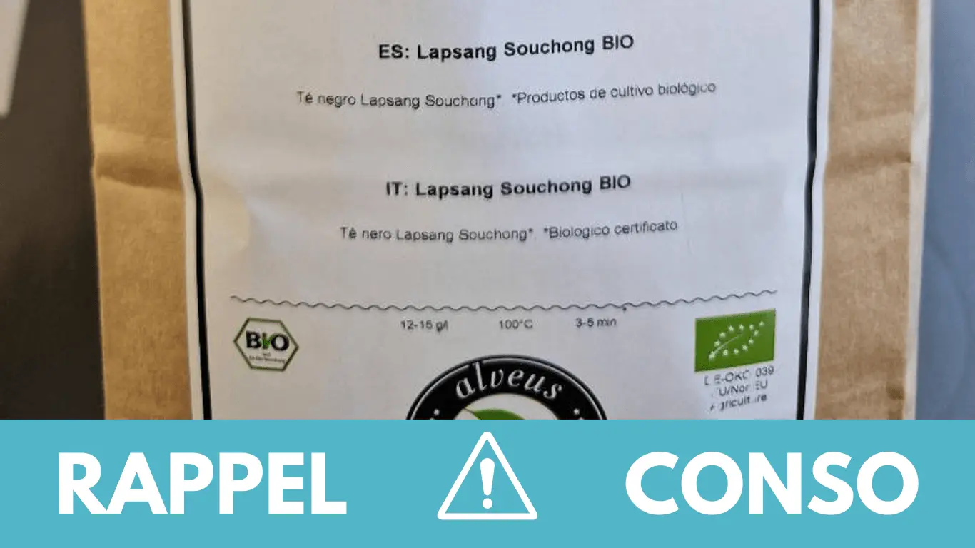 Le rappel consommateur concerne le Thé noir Lapsang Souchong biologique de la marque Alveus. Il est commercialisé dans plusieurs enseignes de France entière du Du 01/03/2024 au 02/08/2024. Il s’agit du lot LO554734 Date de durabilité minimale 03/07/2026.