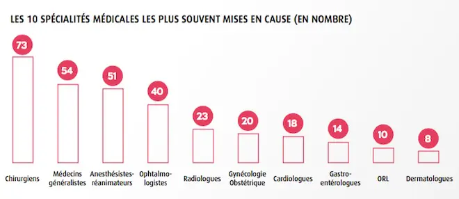 Malgré cette augmentation du nombre de plaintes envers les médecins généralistes, les spécialités médicales les plus souvent mises en cause restent la neurochirurgie et la chirurgie orthopédique.