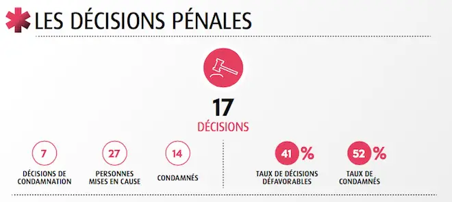 Au pénal, 7 décisions sur 17 ont abouti à une condamnation. "Cela reste exceptionnel", tient à souligner Nicolas Gombault.