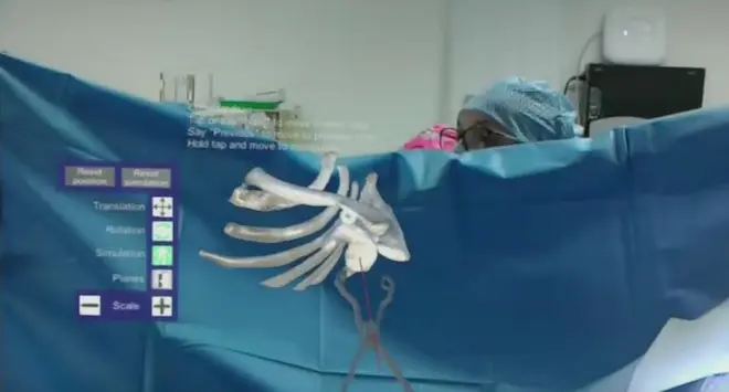 "Le graal pour un médecin est de voir ce que son œil ne peut pas visualiser : le squelette du patient dans les moindres détails. C’est ce qui va se passer", a expliqué au Parisien Thomas Gregory. Son casque de "réalité mixte" Hololens (fabriqué par Microsoft) permet d'observer virtuellement des images en trois dimensions de l'anatomie de la patiente pendant l'opération, mais également des vidéos et des dossiers médicaux.