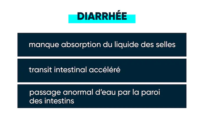 La diarrhée implique un ou plusieurs des mécanismes suivants :