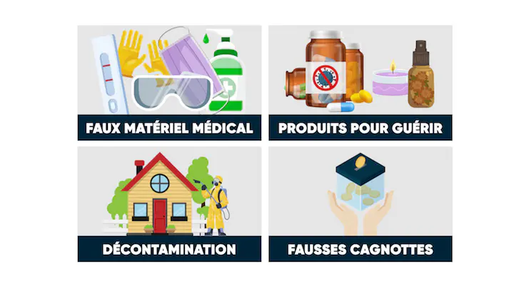 Il y a beaucoup d’escroqueries depuis le début de la crise du coronavirus. Les escroqueries les plus courantes sont sur le site de la répression des fraudes.
