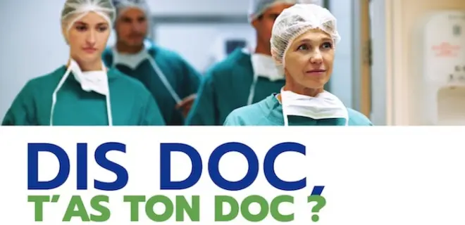 Un constat qui a conduit l'association à développer une campagne de sensibilisation avec le slogan "dis donc, t'as ton doc ?", et à travers douze visuels "représentatifs de la diversité des parcours professionnels et des modes d’exercice, libéral ou public". Les messages seront diffusés "durablement" auprès des médecins et des étudiants grâce à un partenariat noué avec une trentaine d'organisations (syndicats, Ordre, représentants d'hôpitaux et de cliniques, ministère de la Santé).