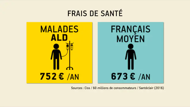 On pense même que les personnes reconnues à 100% sont celles qui ont le plus de frais de santé à payer. Une enquête menée par 60 millions de consommateurs a montré que les malades en ALD payaient en moyenne de leur poche 752 euros par an, contre 673 euros pour le Français moyen. 10% des patients en ALD débourseraient même jusqu'à 1.700 euros par an ! Mais ces montants ne comprennent pas la prise en charge par les complémentaires santé qui peut couvrir jusqu'à 89% du reste à charge des patients. Mais il faut souscrire à une couverture haut de gamme pour réellement déduire les frais.