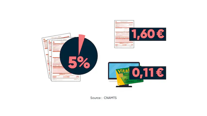 Cela concerne une minorité de médecins seules 5% des FDS sont en version papier. C’est contraignant pour le patient et surtout plus cher pour la collectivité. Le traitement d’une feuille de soin papier coûte 1,60€ à la Sécu contre 11 cents pour la version électronique, c’est 15 fois plus cher ! Si tout était télétransmis, ça permettrait d’économiser plusieurs millions d’euros.