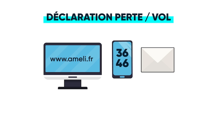 En cas de vol ou perte de votre carte, la première chose à faire est de prévenir votre CPAM. Pour ça 3 possibilités :