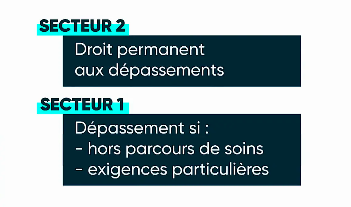Tous les praticiens n'ont pas le droit de faire des dépassements. Il existe deux grandes catégories de médecins : secteur 1 et secteur 2. Seuls les médecins de secteur 2 ont le droit de facturer des dépassements. Le secteur 2 est en quelque sorte le "carré VIP" de la médecine. On ne peut y entrer que si on a un titre hospitalier, ancien chef de clinique par exemple. Et dans ce cas, on a un droit permanent aux dépassements.