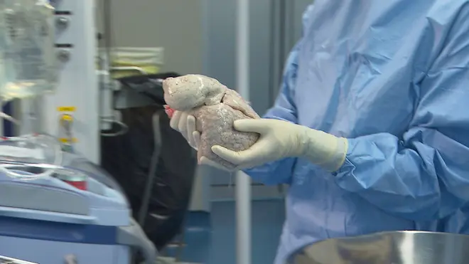 Avec le Pr Olaf Mercier, chirurgien thoracique de l'hôpital Marie Lannelongue, au Plessis-Robinson, Michel assistera ensuite à ce travail d'horloger quand le chirurgien implante les poumons en suturant les bronches et les vaisseaux sanguins… Un défi dont dépend l'issue de la greffe : ce moment magique où les poumons greffés se regonflent comme des ballons et reprennent vie.
