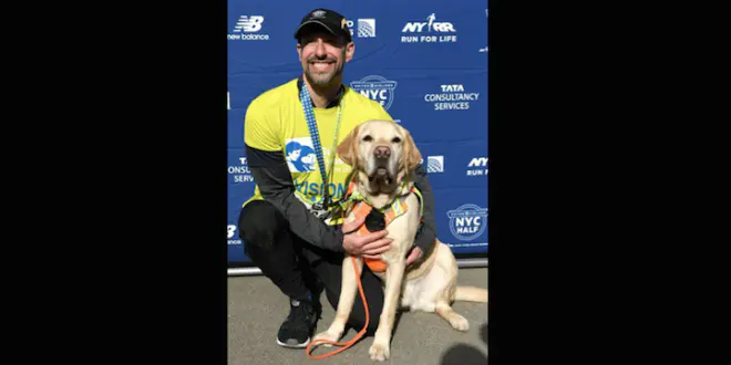 Un sportif non-voyant de 48 ans a couru le semi-marathon de New York grâce à trois labradors guides d’aveugles qui se sont relayés tout au long du parcours.