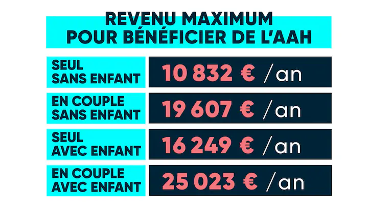Il y a également des critères de résidence. Vous ne pourrez percevoir l’AAH qu’à condition de résider en France ou en Outre-mer. Il y a bien sur le niveau de revenus, et le revenu du conjoint est également pris en compte dans ce calcul.