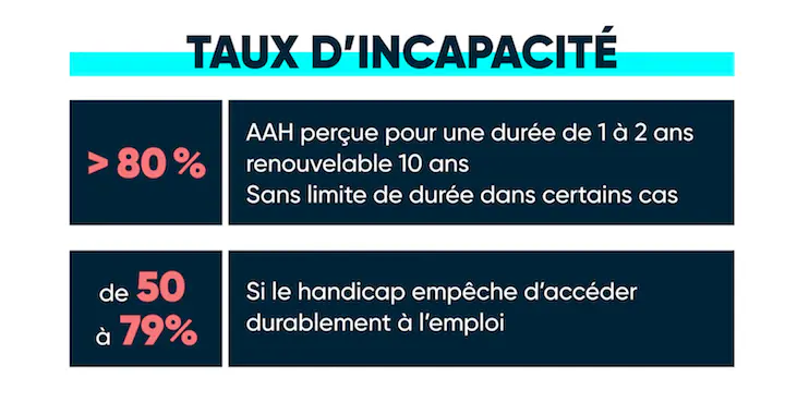 Dans ce cas-là, vous pouvez aussi toucher l’AAH pour une durée de 1 à 2 an renouvelable. L’aide peut être perçue jusqu'à 10 ans en tout, mais il faudra toutefois demander un renouvellement à chaque fois que vos droits arrivent à leur fin.