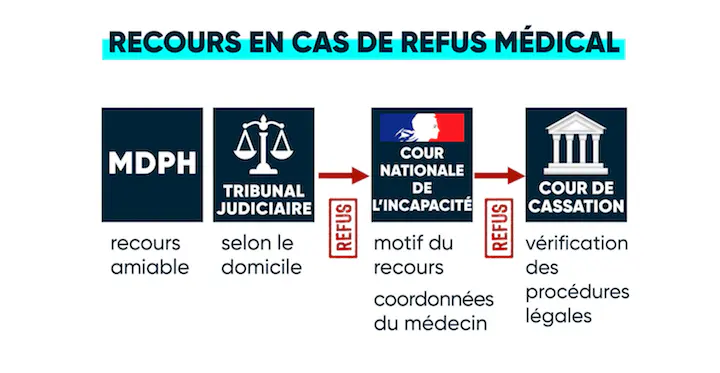 Si vous souhaitez contester la décision, en cas de refus médical tenant au degré du handicap vous pouvez :